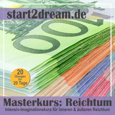 Gönne dir 20 Tage lang täglich ein paar Minuten, die dein Leben verändern können: Unser Intensiv-Imaginations-Kurs verändert dein Verhältnis zu Reichtum und Fülle! Erlebe in zwanzig Tagen, wie es sich anfühlt, reich zu sein, und nutze deine Vorstellungskraft, um mit all deinen Sinnen intensive Erfahrungen von Wohlstand und Fülle zu machen.